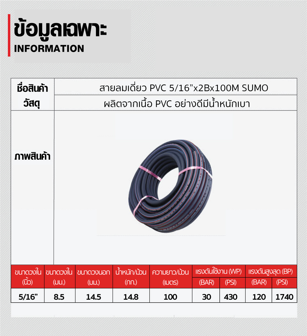สายลมเดี่ยว PVC 5/16”x2Bx100M SUMO