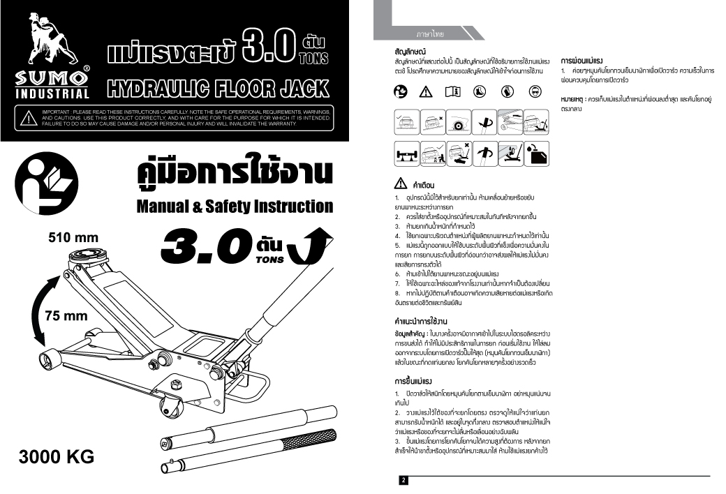 • รับน้ำหนักได้ : 3.0 ตัน ช่วงยกต่ำสุด : 75 มม. ช่วงยกสูงสุด : 510 มม.