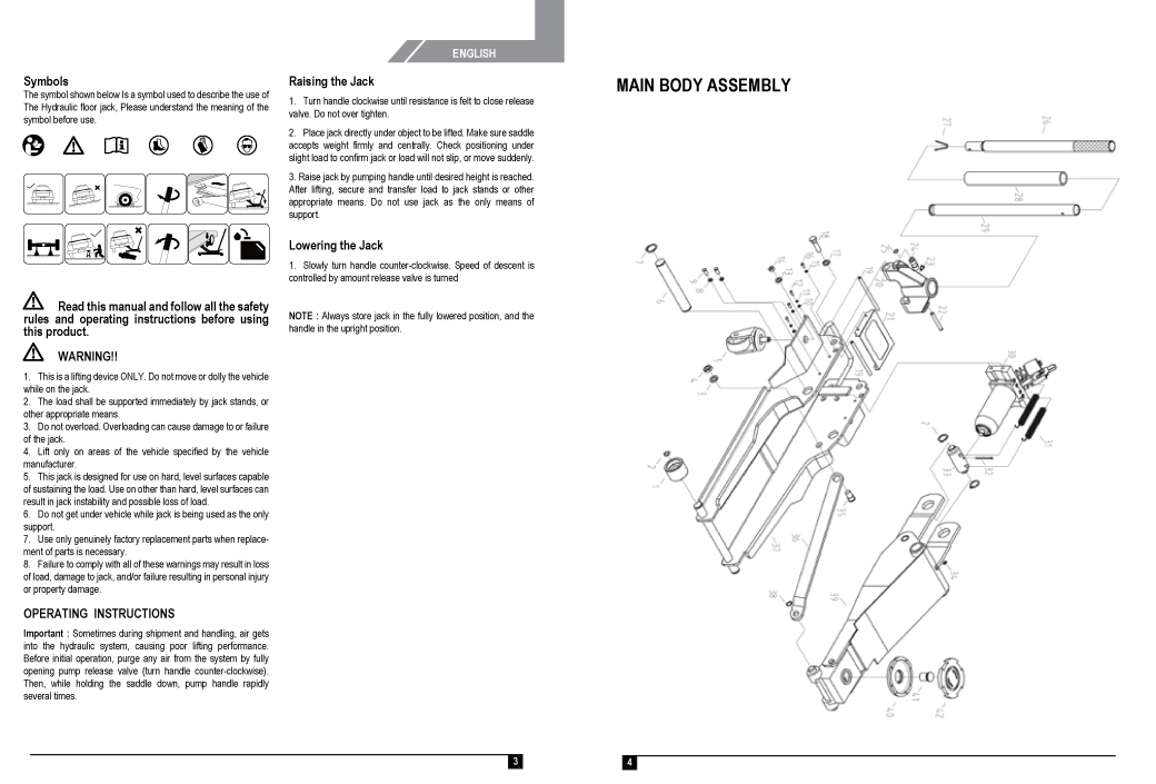 • Failure to heed these warnings may result in damage to jack and/or failure resulting in personal injury or property damage.