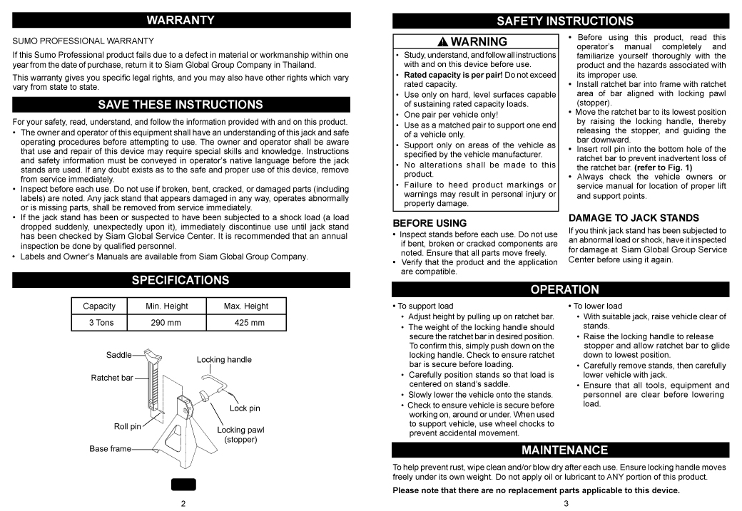 Jack Stand 3 Tons  SUMO