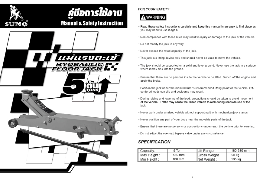 คุณกำลังรีวิว:แม่แรงตะเข้ 5 ตัน SUMO