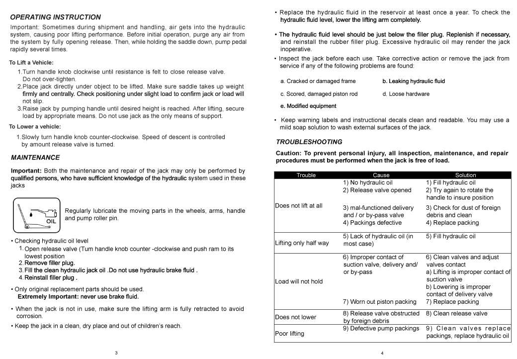 • ส่วนเท้าเหยียบมีไว้สำหรับ ยกคานให้เร็วขึ้น เพื่อลดระยะเวลาในการใช้มือเพื่อยกคานยก แต่ไม่สามารถเหยียบเพื่อยกรถ