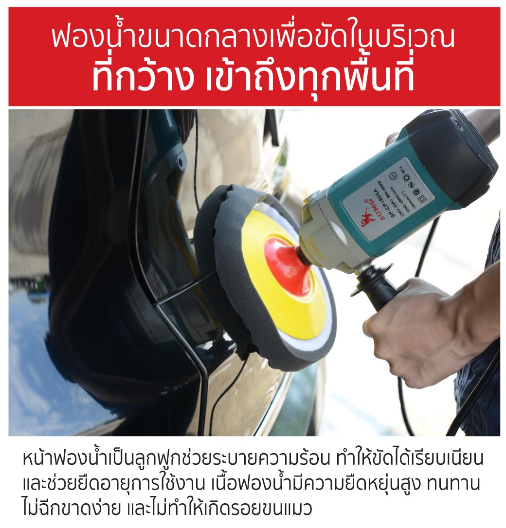 • ใช้สำหรับงานเก็บริ้วรอยขนแกะ รอยริ้วแสง ขจัดคราบสิ่งสกปรกต่างๆ และงานลงแว็กซ์เก็บงานหรืองานเคลือบสีรถ จะช่วยให้รอยต่างๆจางหายไป และกลับมาดูเงางามเหมือนใหม่อีกครั้ง สามารถใช้งานได้กับรถยนต์ทุกประเภทพื้นหินอ่อน และพื้นผิวอื่นๆอีกมากมาย