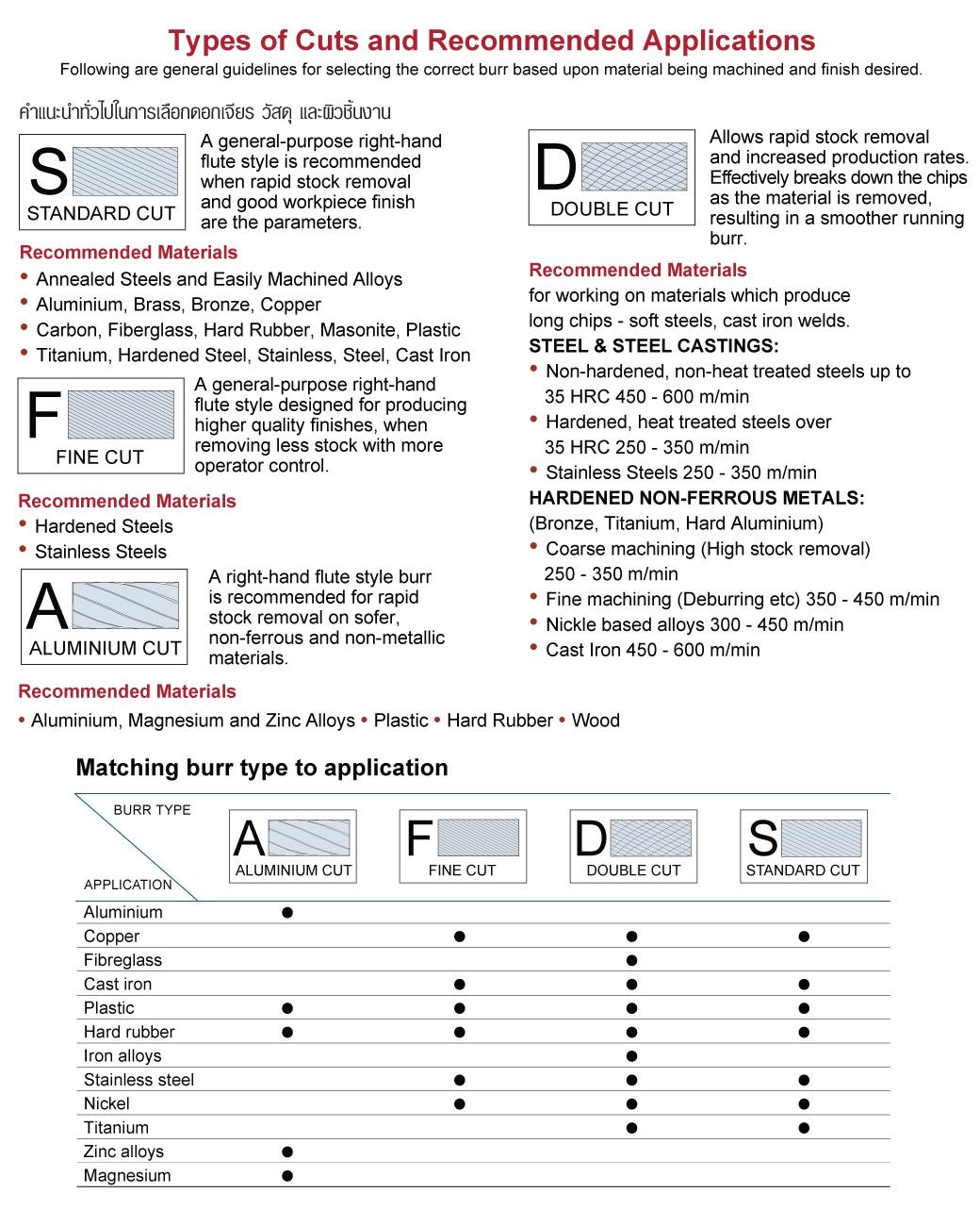 • ออกแบบให้กัดชิ้นงานได้เร็วกว่าหินเจียรนัยแกน โดยไม่อุดตันที่ดอกกัด