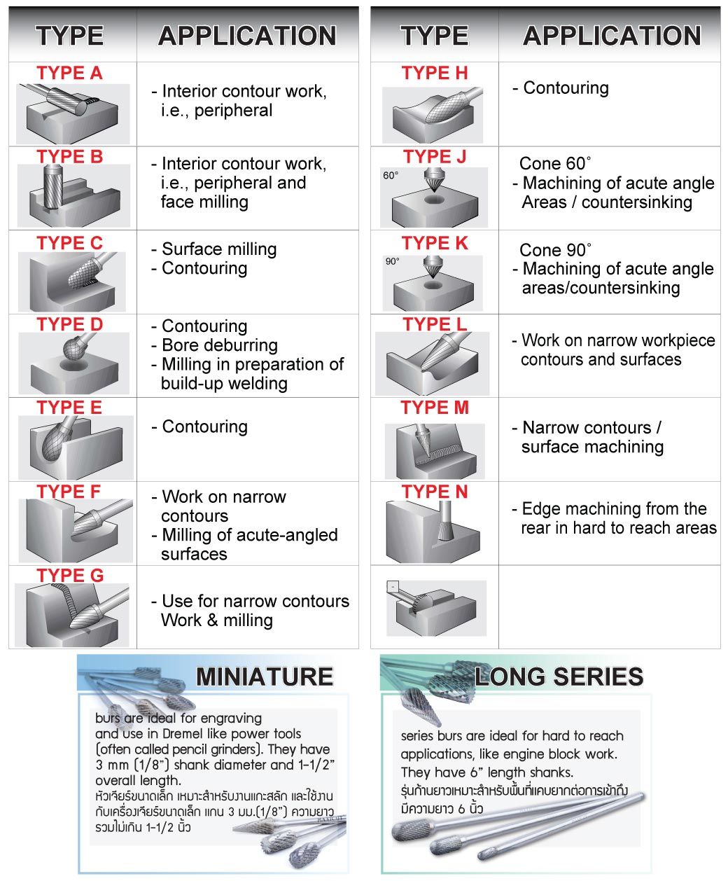 • ดอกเจียรคาร์ไบด์รูปทรง B คาร์ไบด์ทั้งหัว และแกน
