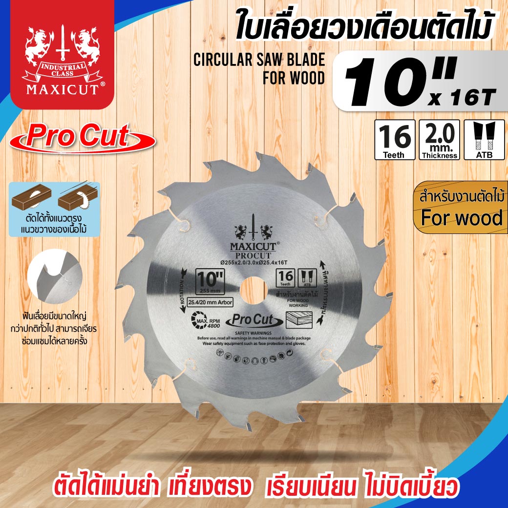ใบเลื่อยวงเดือน size : 10”x16T MAXICUT Procut