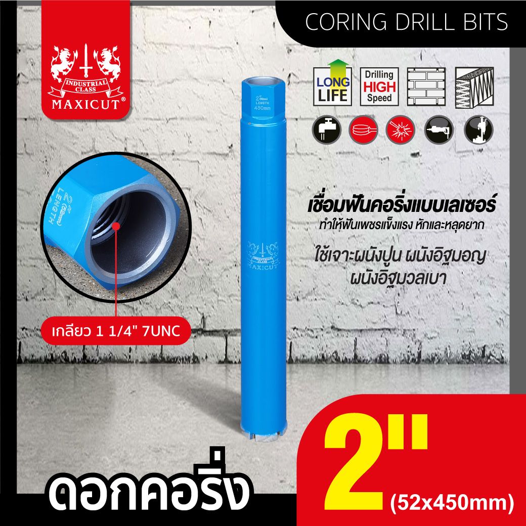 ดอกคอริ่ง 52x450mmใช้เจาะ ผนังปูน ผนังอิฐมอญ ผนังอิฐมวลเบา