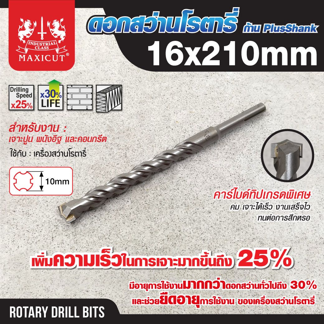 Rotary Drill Bits Plus Shank size : 16x210mm MAXICUT