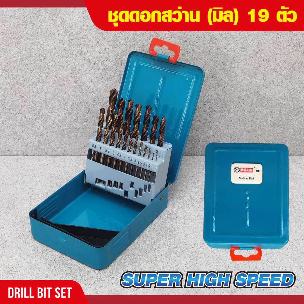 ชุดดอกสว่าน (มิล) 19 ตัว SUPER HIGH SPEED  สำหรับ เหล็ก อะลูมิเนียม เหล็กหล่อ ไม้ พลาสติก