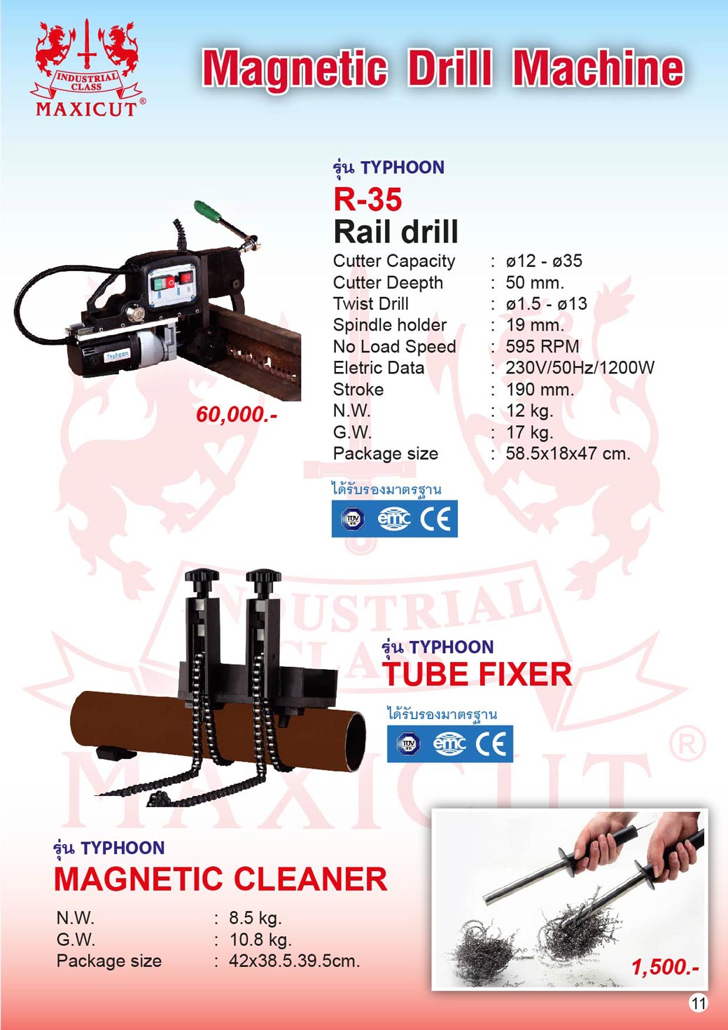 สว่านแท่นแม่เหล็กไฟฟ้า รุ่น TYP-100 MAXICUT ขนาดหัว Ø12-Ø35 ตัดลึก 50mm กำลังไฟ 1200W