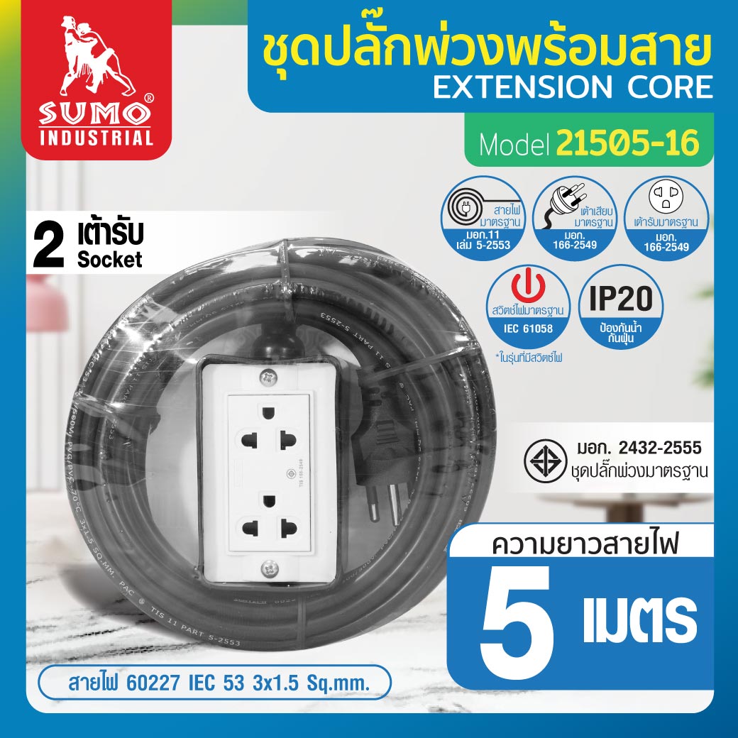 ชุดปลั๊กพ่วงพร้อมสาย รุ่น 21505-16 SUMO