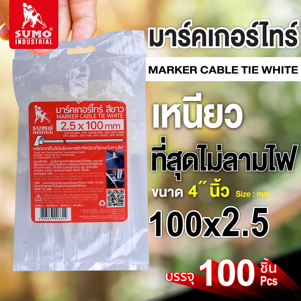 คุณกำลังรีวิว:มาร์คเกอร์ไทร์ 100mm.(4")x2.5mm สีขาวใส