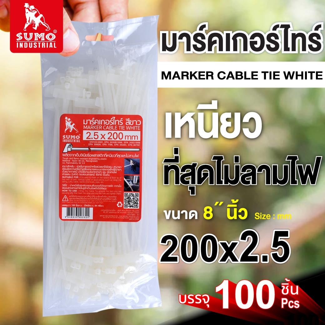 คุณกำลังรีวิว:มาร์คเกอร์ไทร์ 200mm.(8")x2.5mm สีขาวใส