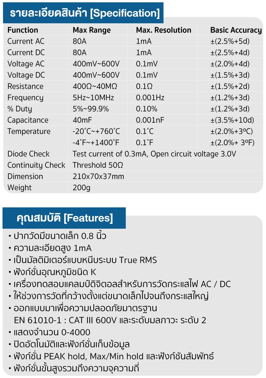 • วัดกระแสไฟฟ้า AC/DC Current ได้สูงสุด 80A