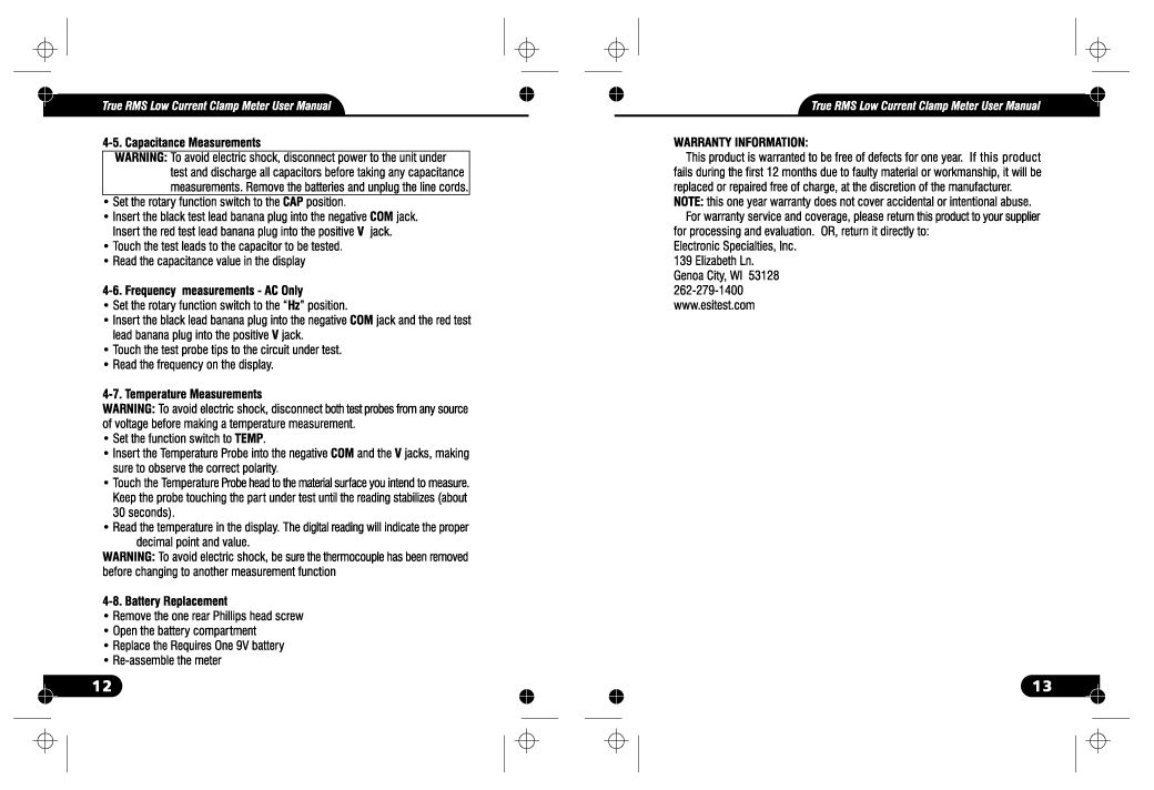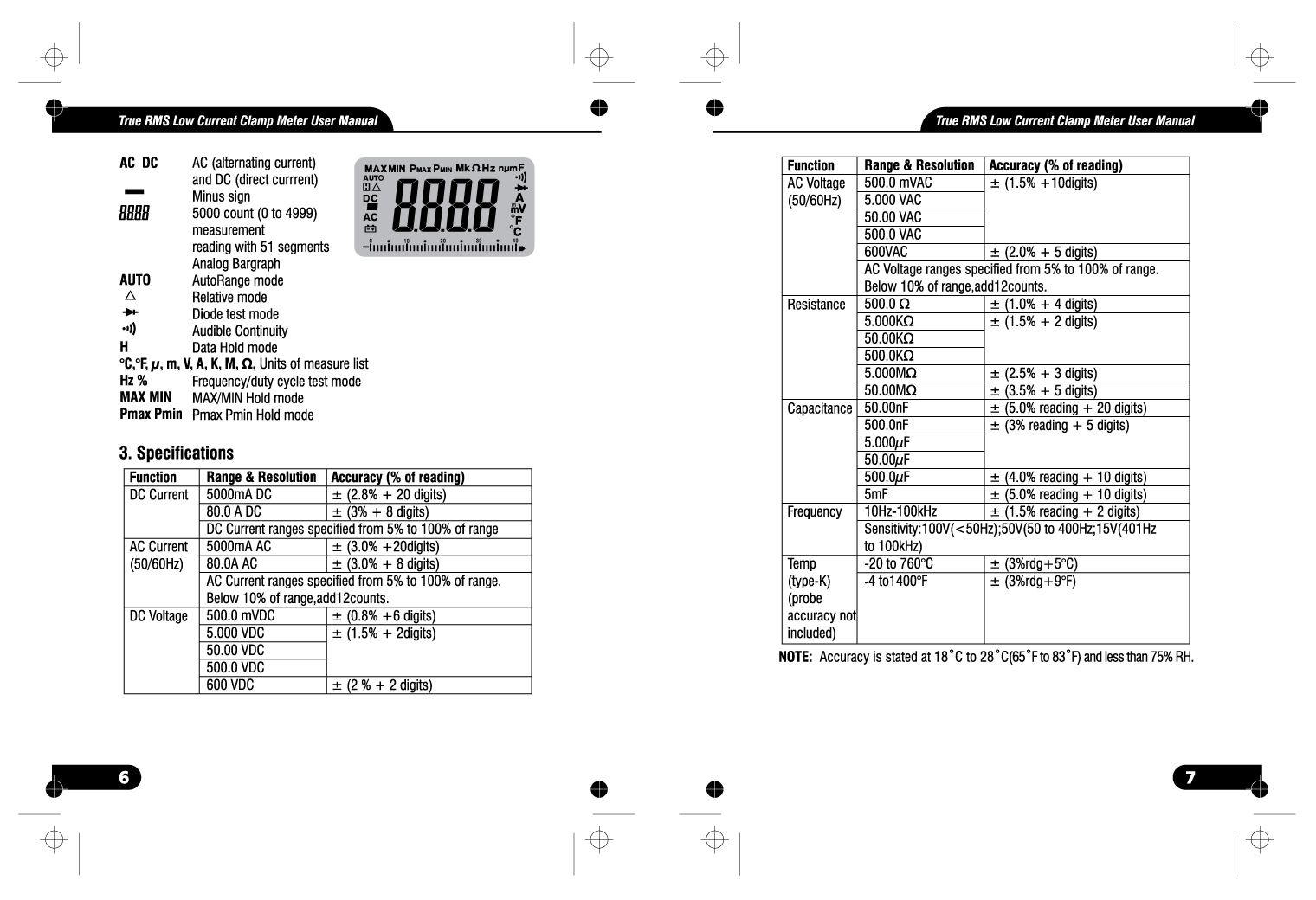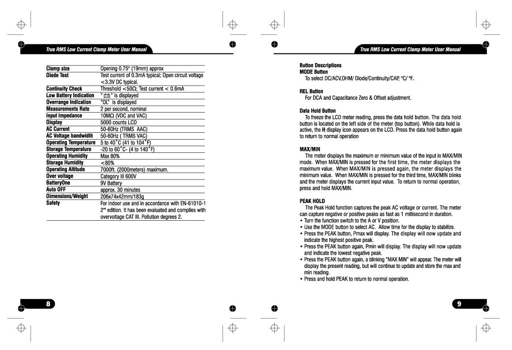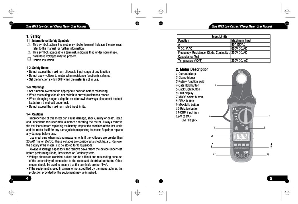 True RMS Low Current Clamp Meter User Manual (true RMS คู่มือผู้ใช้แคลมป์มิเตอร์กระแสต่ำ)
