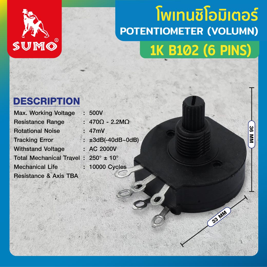 โพเทนชิโอมิเตอร์ (Volume) 1K B102 (6 pins) ใช้กับเครื่อง TIG200/ STICK200/ CUT40/ CUT60/ CUT100/ TIG-STICK200/ STICK250/ STICK315/ TIG315