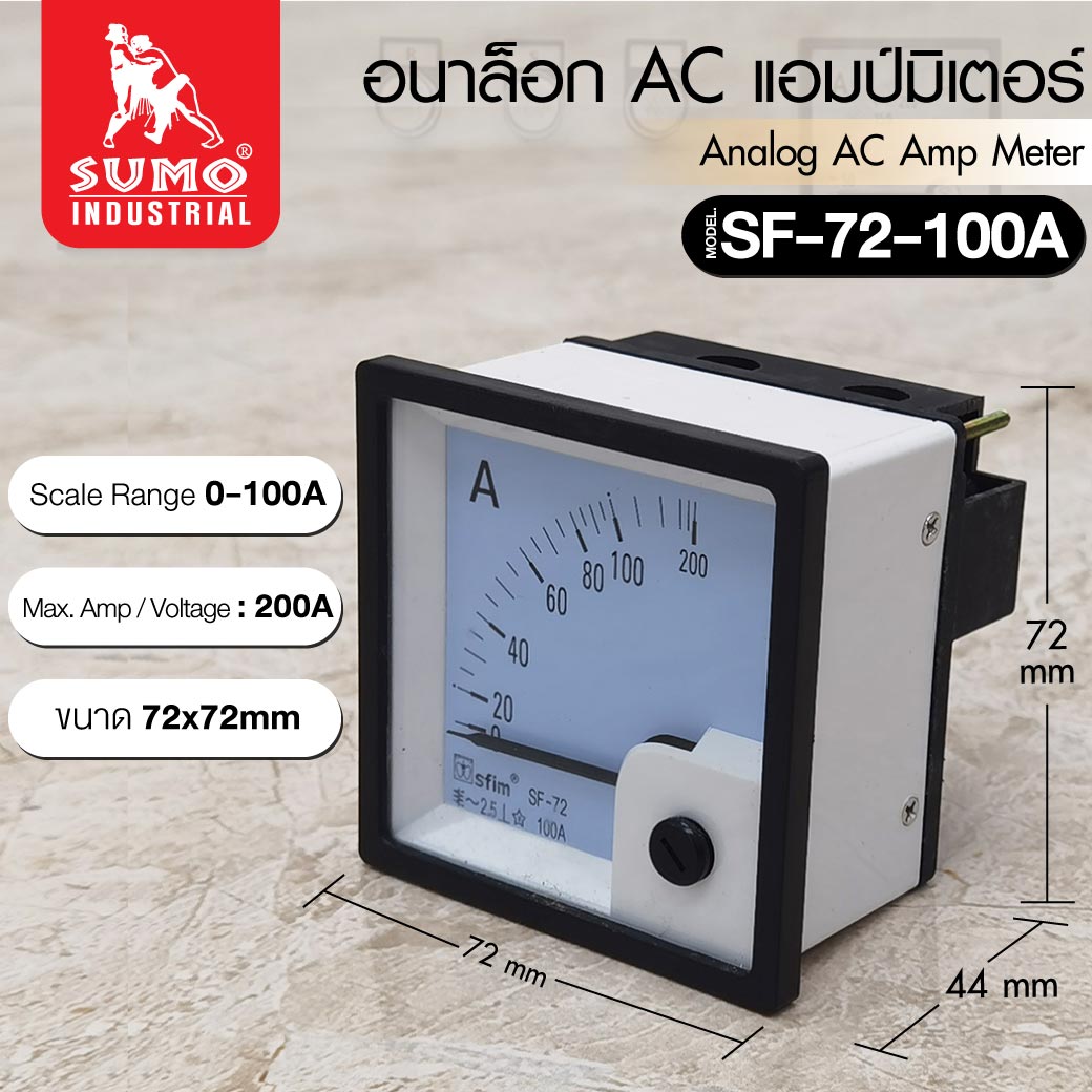 อนาล็อก AC แอมป์มิเตอร์ 100A รุ่น SF-72-100A ใช้วัดไฟระบบ AC แสดงกระแส 0-100A