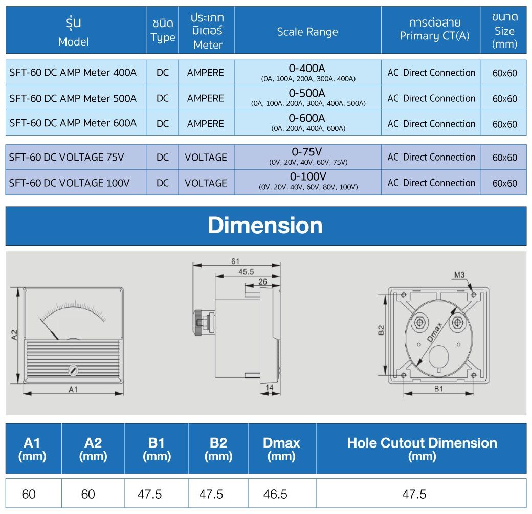 แอมป์มิเตอร์ Amp Meter 500A แบบเข็ม Analog รุ่น SFT60