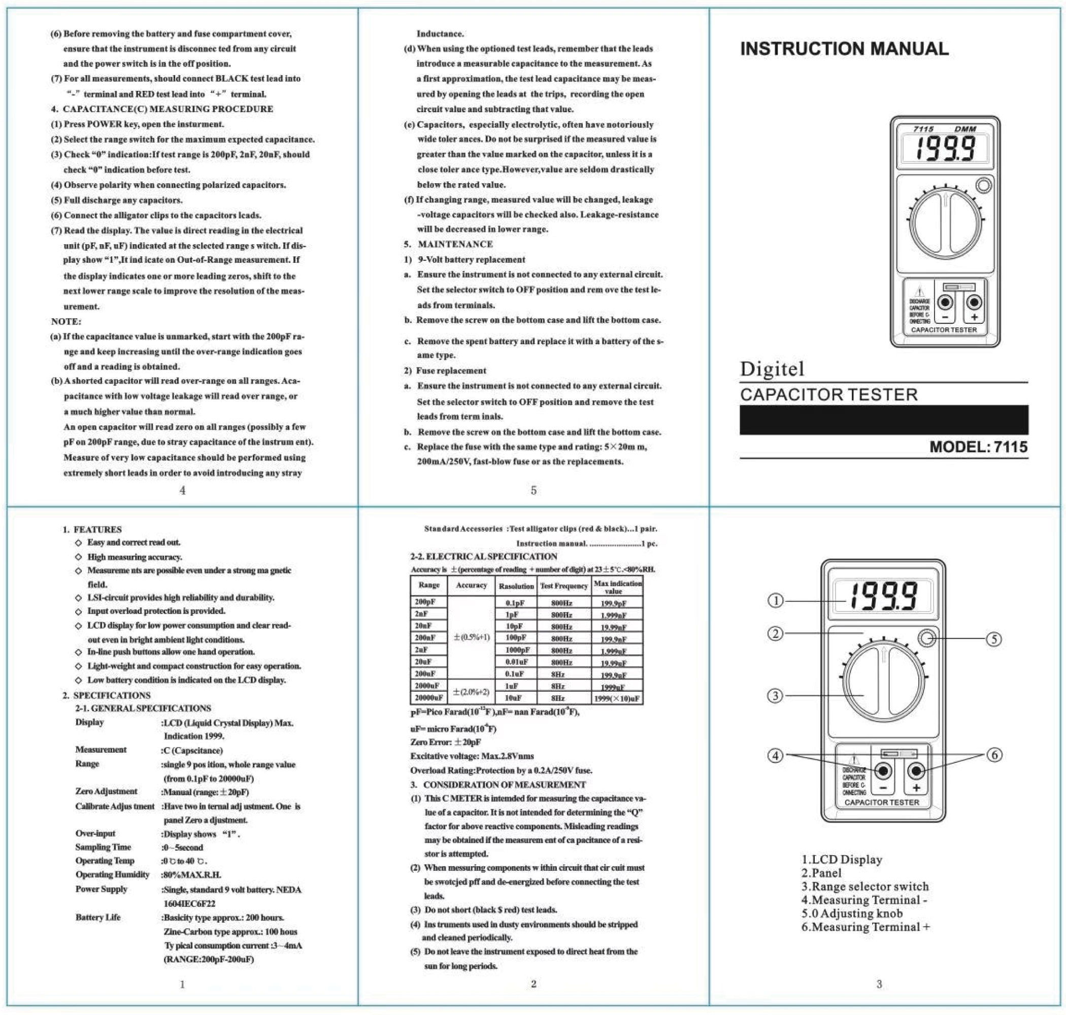 • ฟั่งก์ชั่น Capacitance : 200p/2n/20n/200nF