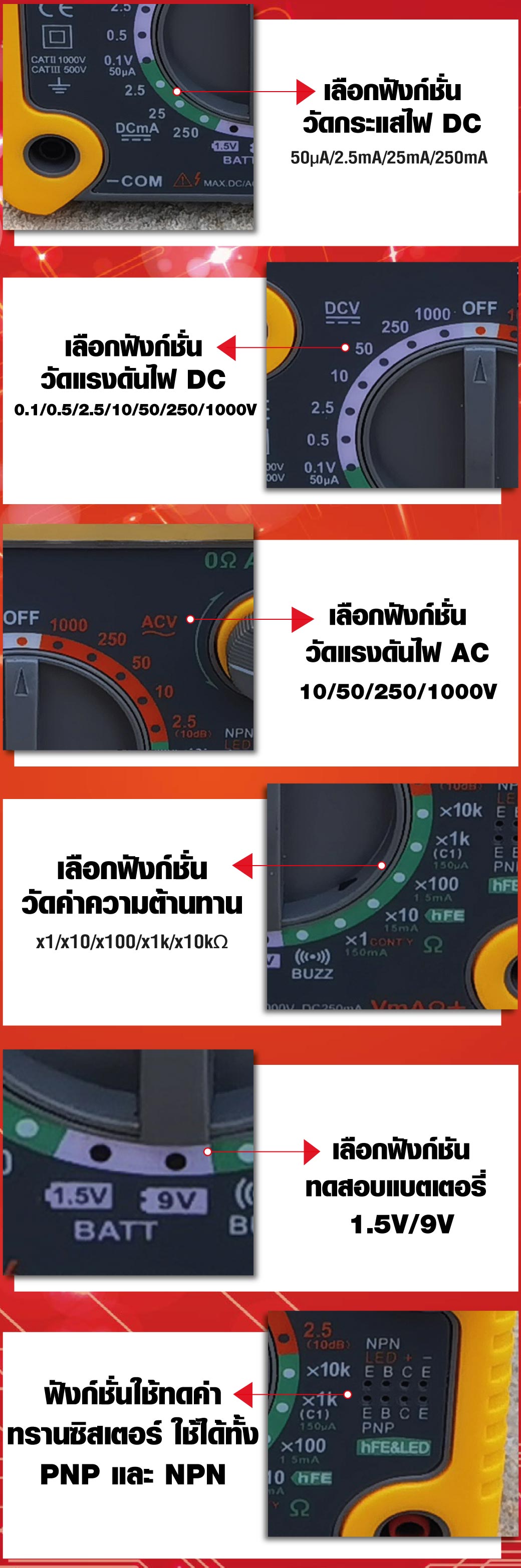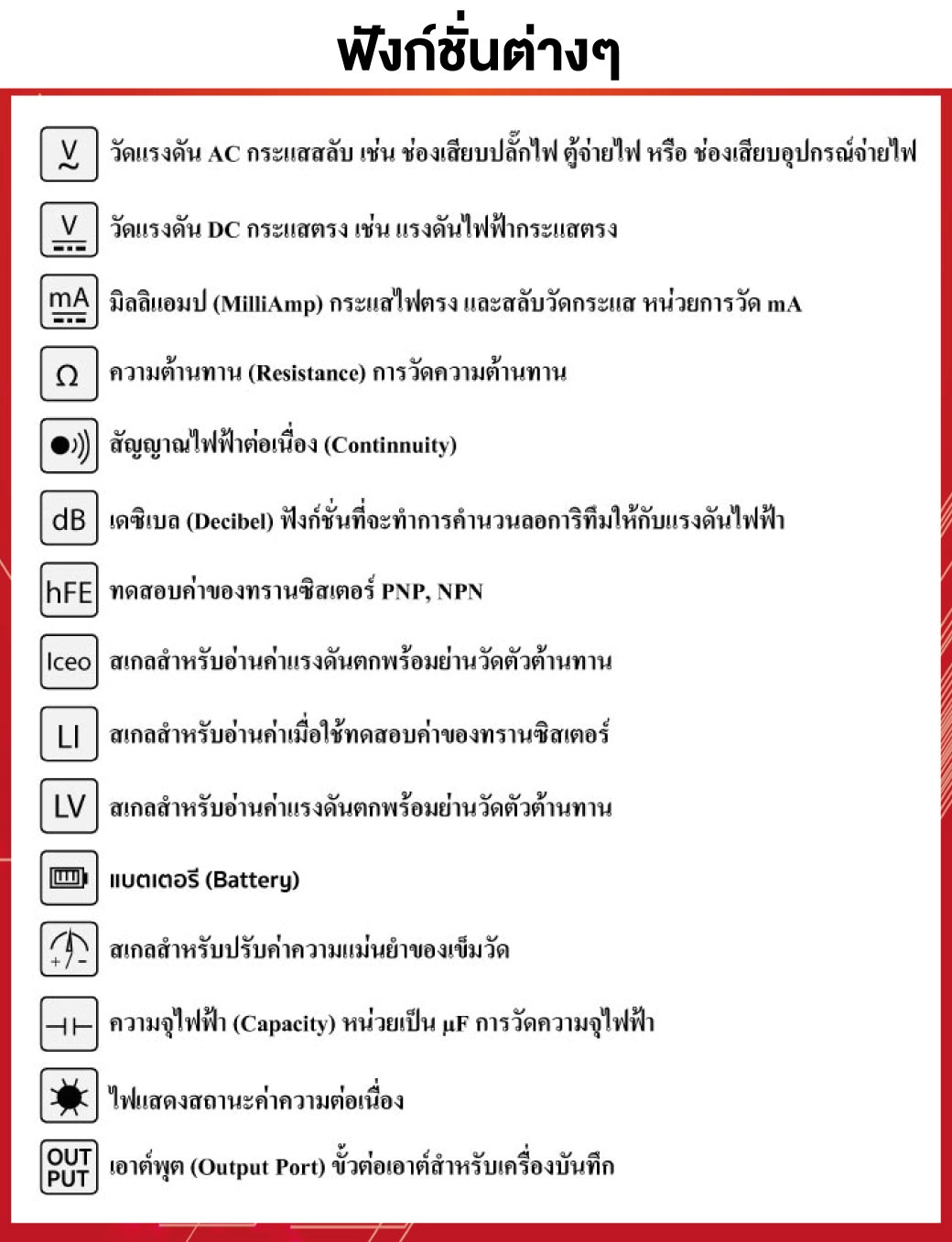 • ฟังก์ชันวัดค่าความต้าน x1/x10/x100/x1k/x10kΩ