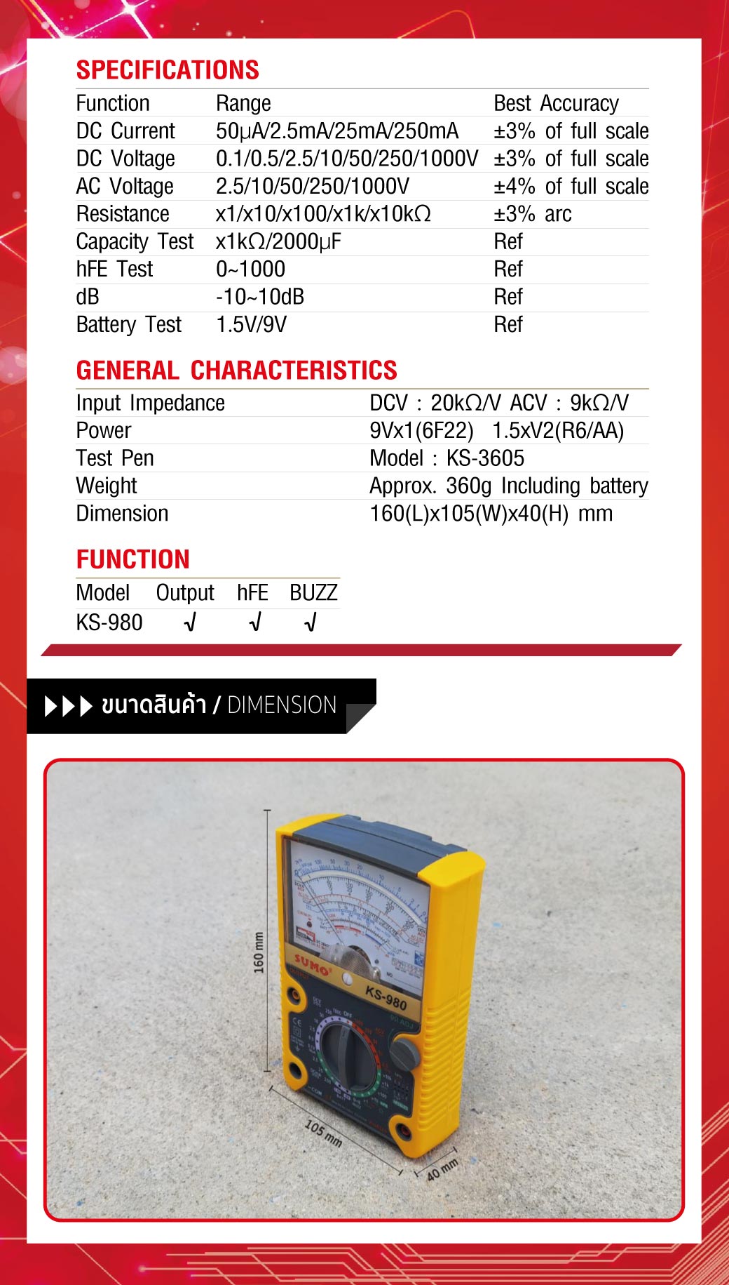 • อนาล็อกมัลติมิเตอร์ รุ่น KS-980 ครบทุกฟังก์ชันในเครื่องเดียว