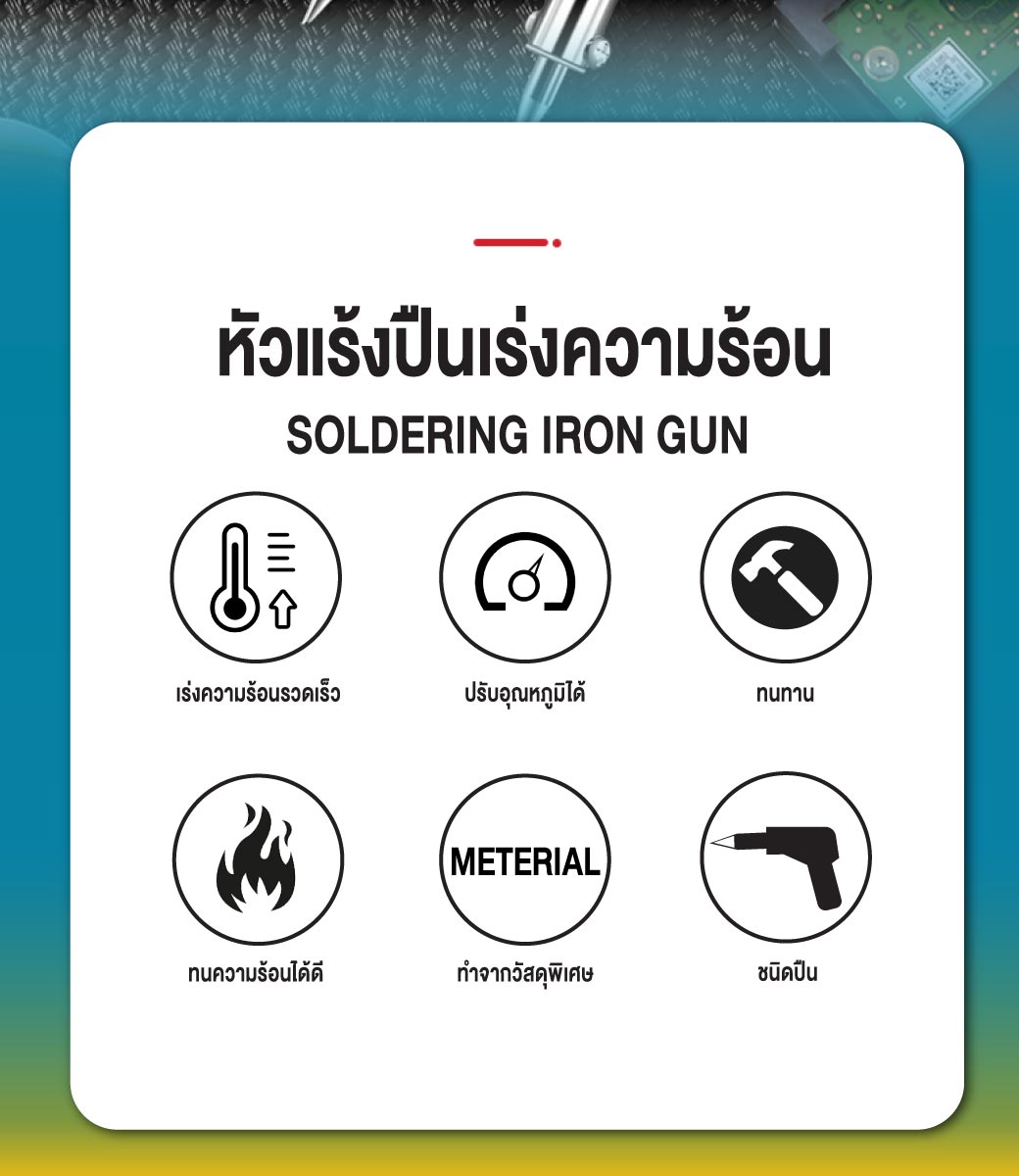 • หัวแร้งปืน มีลวดฮีทเตอร์เซรามิกเกรดพิเศษ ให้ความร้อนเร็ว
