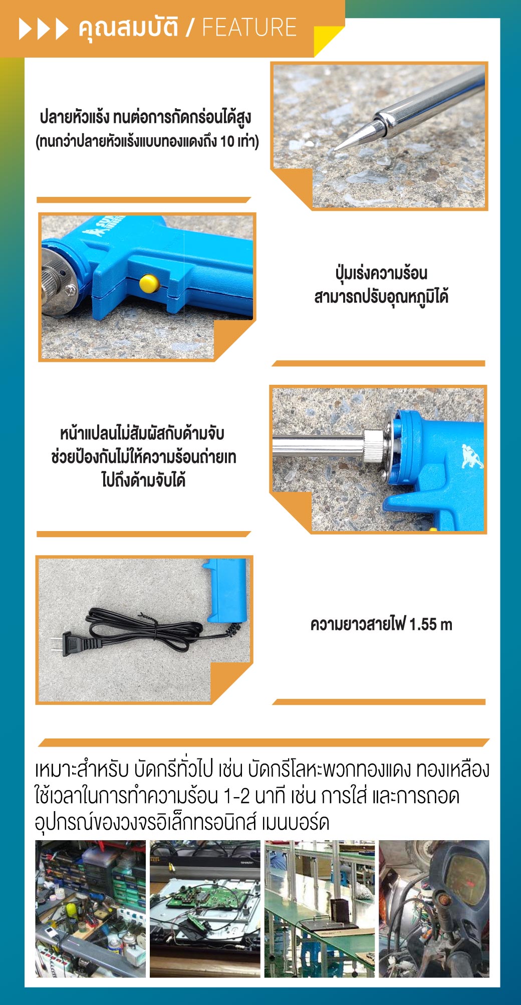 • มีประสิทธิภาพไม่เหมือนใครปลายหัวแร้งจึงมีอายุการใช้งานที่นาน