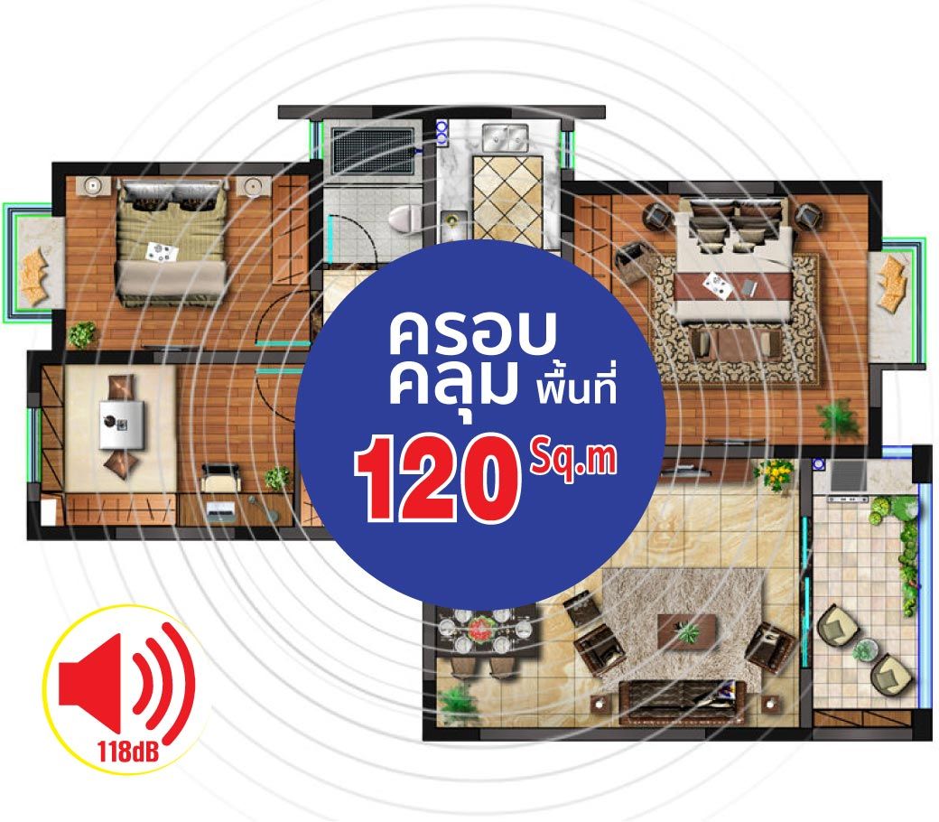 • ครอบคลุมพื้นที่ 120 ตารางเมตร (Sq.m)