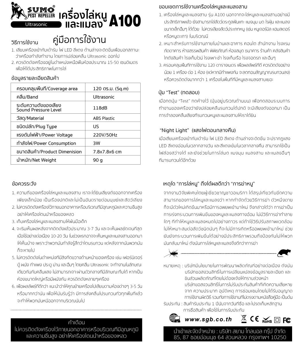 เครื่องไล่หนูและแมลงสาบ รุ่น A100 SUMO