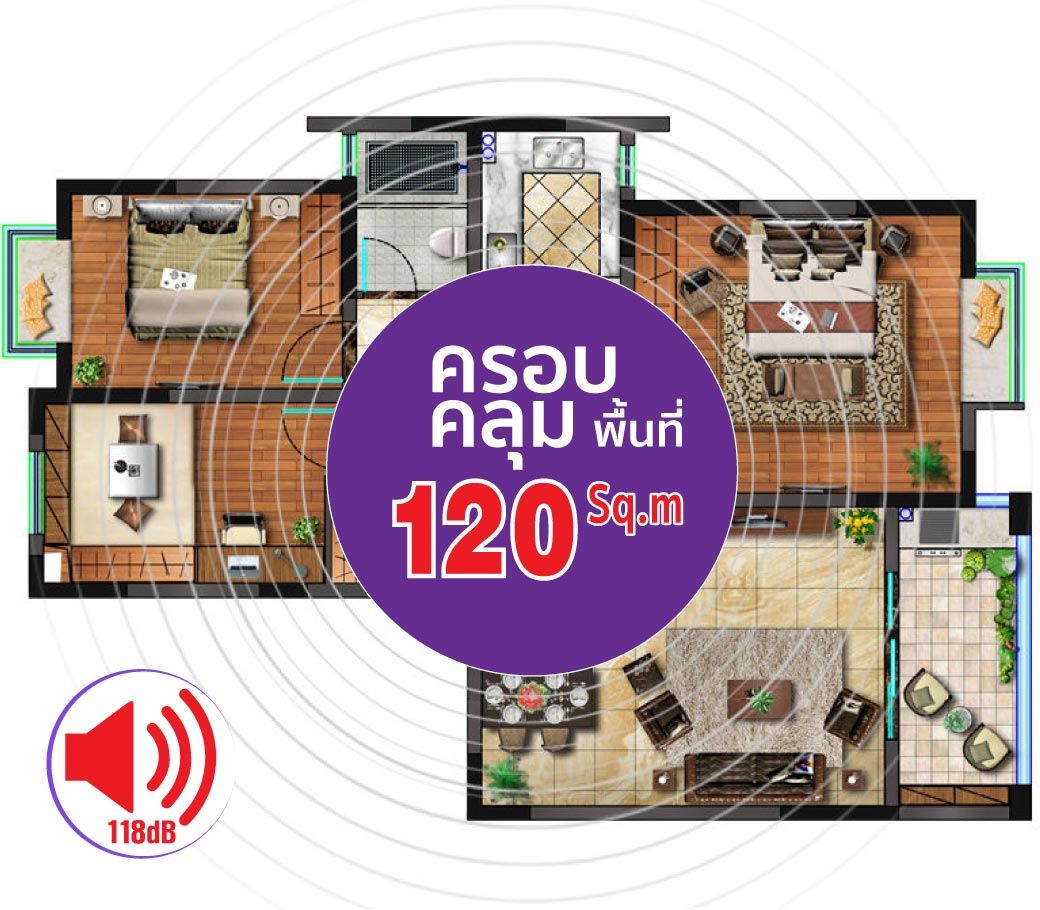 • ครอบคลุมพื้นที่ 120 ตารางเมตร (Sq.m)