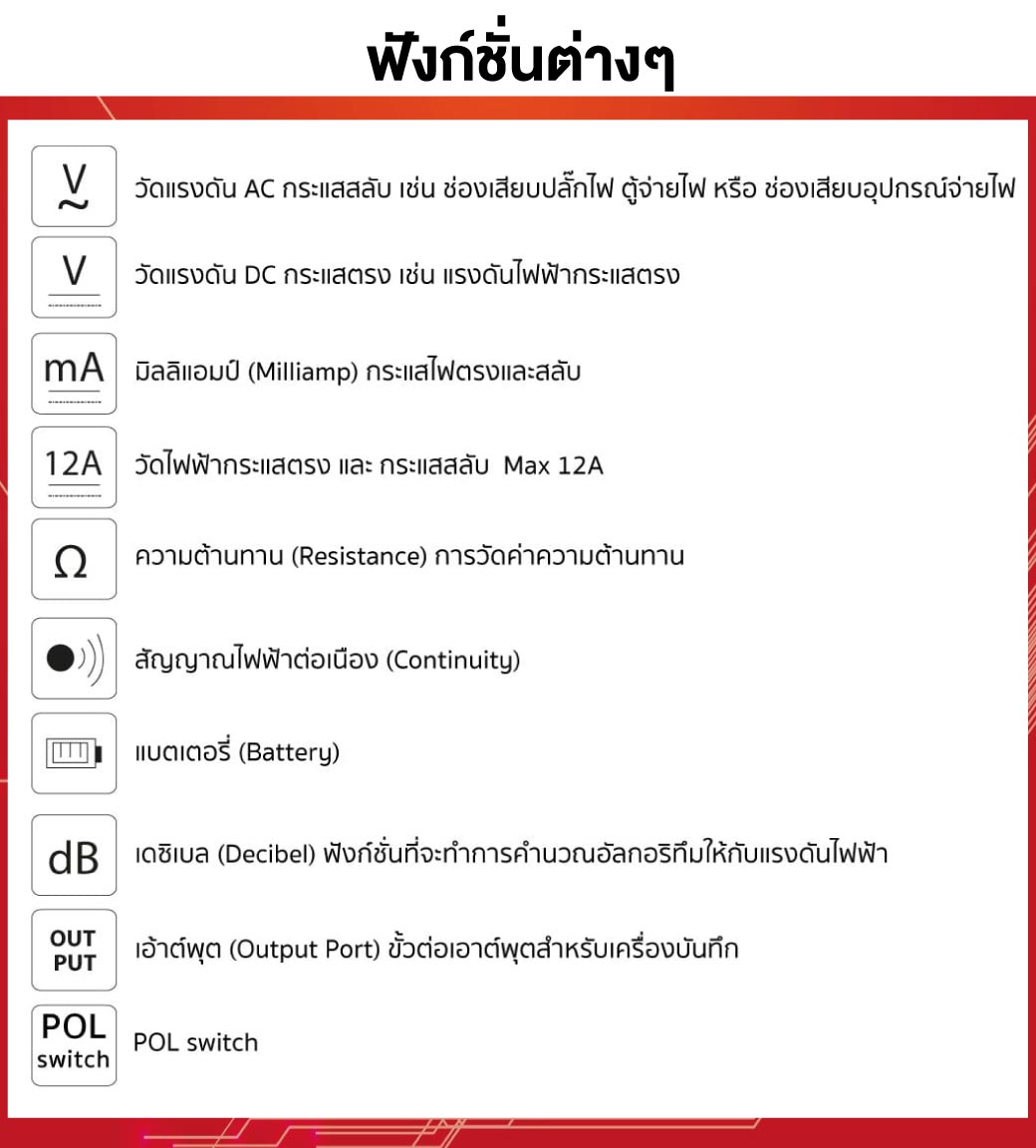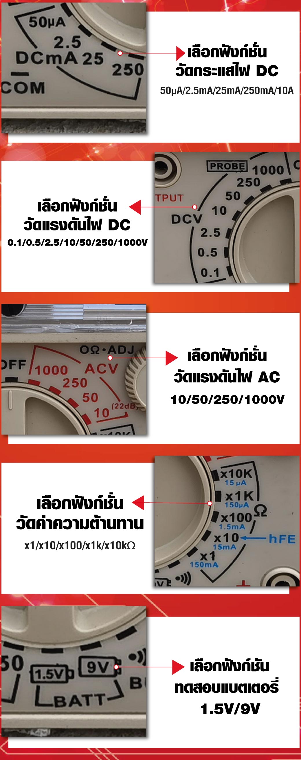 • ฟังก์ชันวัดค่าความต้าน x1/x10/x100/x1k/x10kΩ