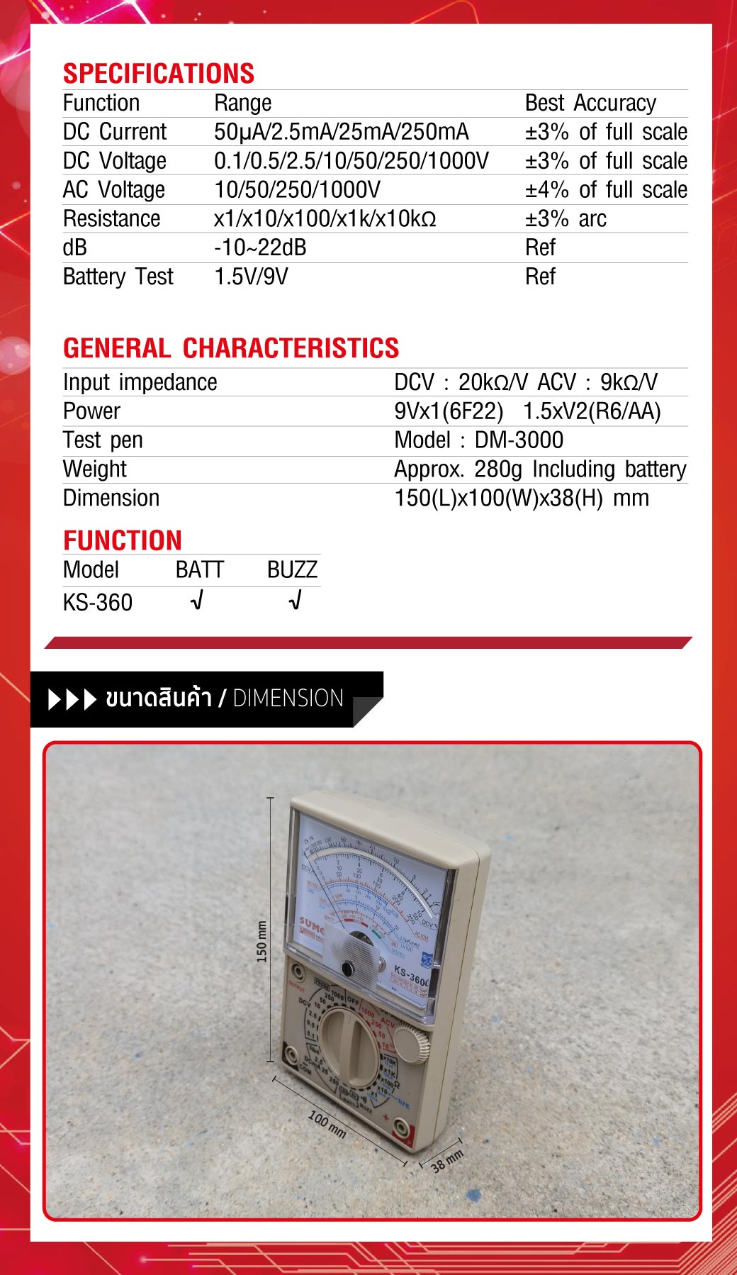 อนาล็อกมัลติมิเตอร์ รุ่น KS-360 SUMO