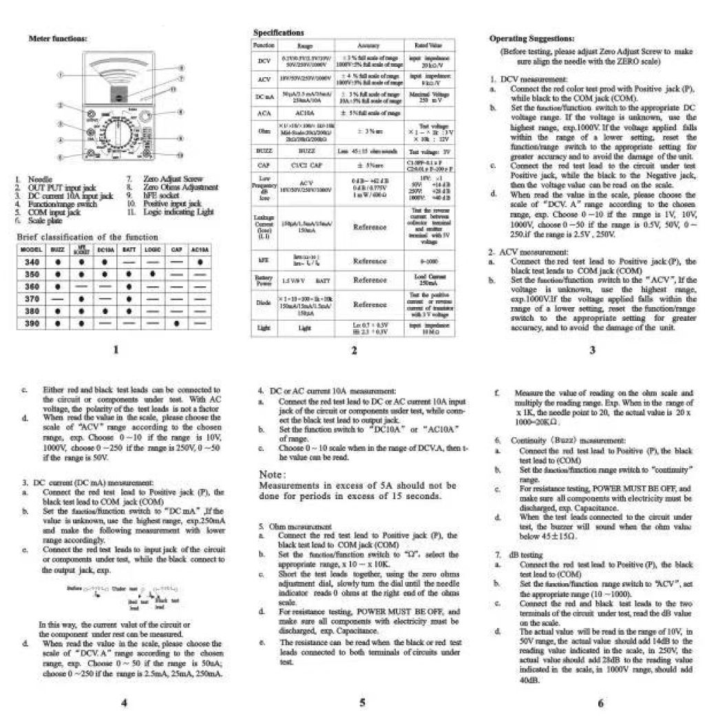 อนาล็อกมัลติมิเตอร์ วัดแรงดันไฟฟ้าสูงถึง 1000V ใช้งานได้ทั้ง AC/DC ระบบป้องกันฟิวส์ และไดโอด เมื่อเกิดความผิดพลาดด้วยฟิวส์และไดโอด