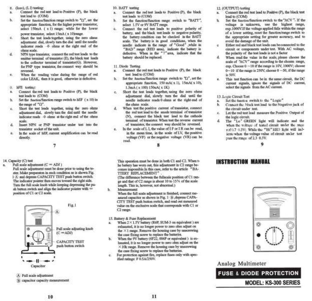 คุณกำลังรีวิว:อนาล็อกมัลติมิเตอร์ รุ่น KS-360 SUMO