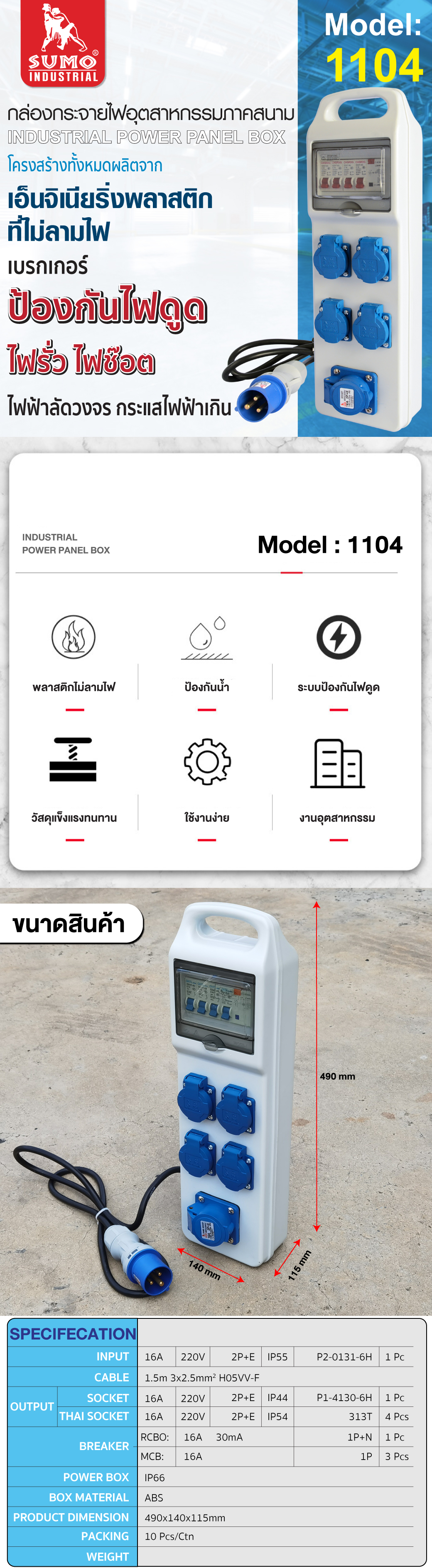 คุณกำลังรีวิว:กล่องกระจายไฟอุตสาหกรรมภาคสนาม รุ่น 1104 SUMO