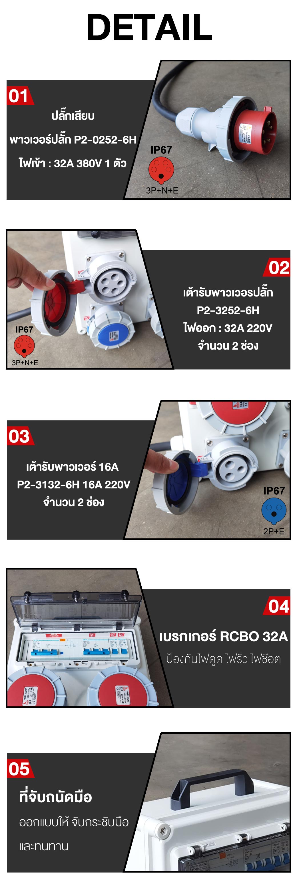 • กล่องกระจายไฟ มีฝาปิด ช่วยป้องกันน้ำเข้าไปในปลั๊กได้ ปลอดภัยต่อผู้ใช้งาน