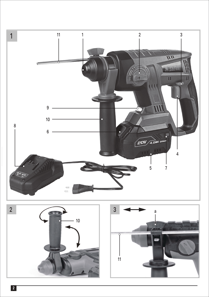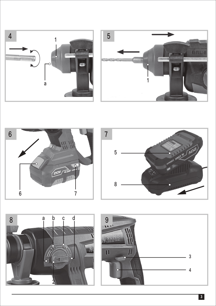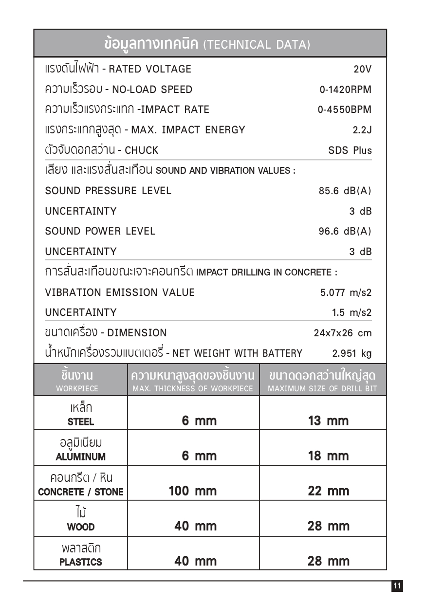 • สว่านโรตารี่ไร้สาย 3 ระบบ ออกแบบมาสำหรับใช้ในการเจาะไม้ โลหะ พลาสติก ปูน คอนกรีตและหิน รวมถึงการเจาะสกัดเบา