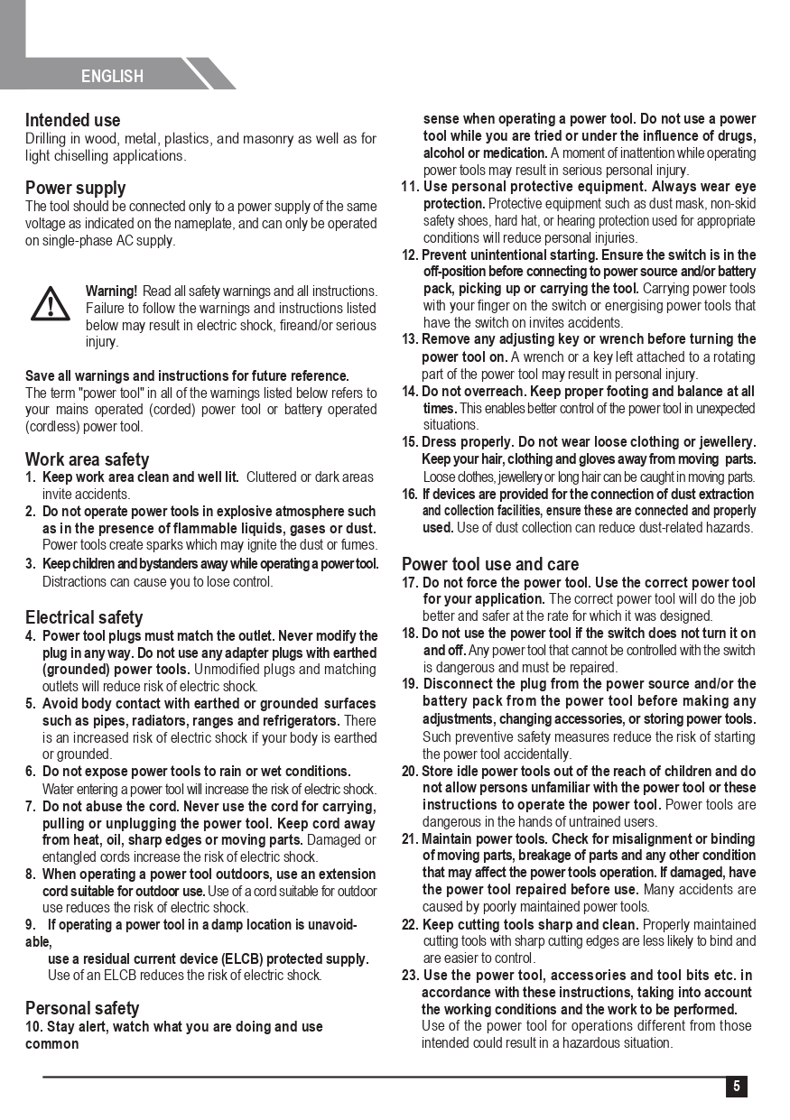 • สำหรับการเจาะเหล็ก ไม้ และพลาสติก การเจาะกระแทกพื้นปูนหรือคอนกรีตหรือหิน