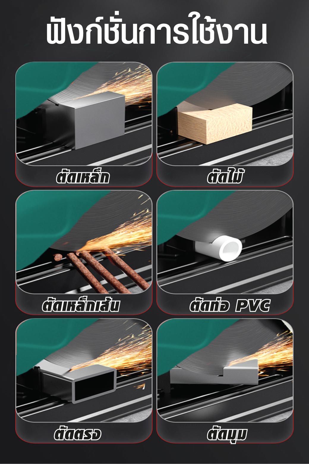 • ตัว เครื่องตัดเหล็ก ผลิตจากวัสดุเอ็นจิเนียริ่งพลาสติกที่ไม่ลามไฟ ทนความร้อนสูง