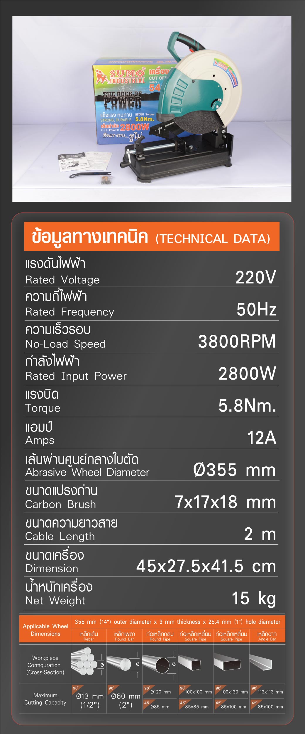 คุณกำลังรีวิว:เครื่องตัดไฟเบอร์ 14" รุ่น 5414 SUMO