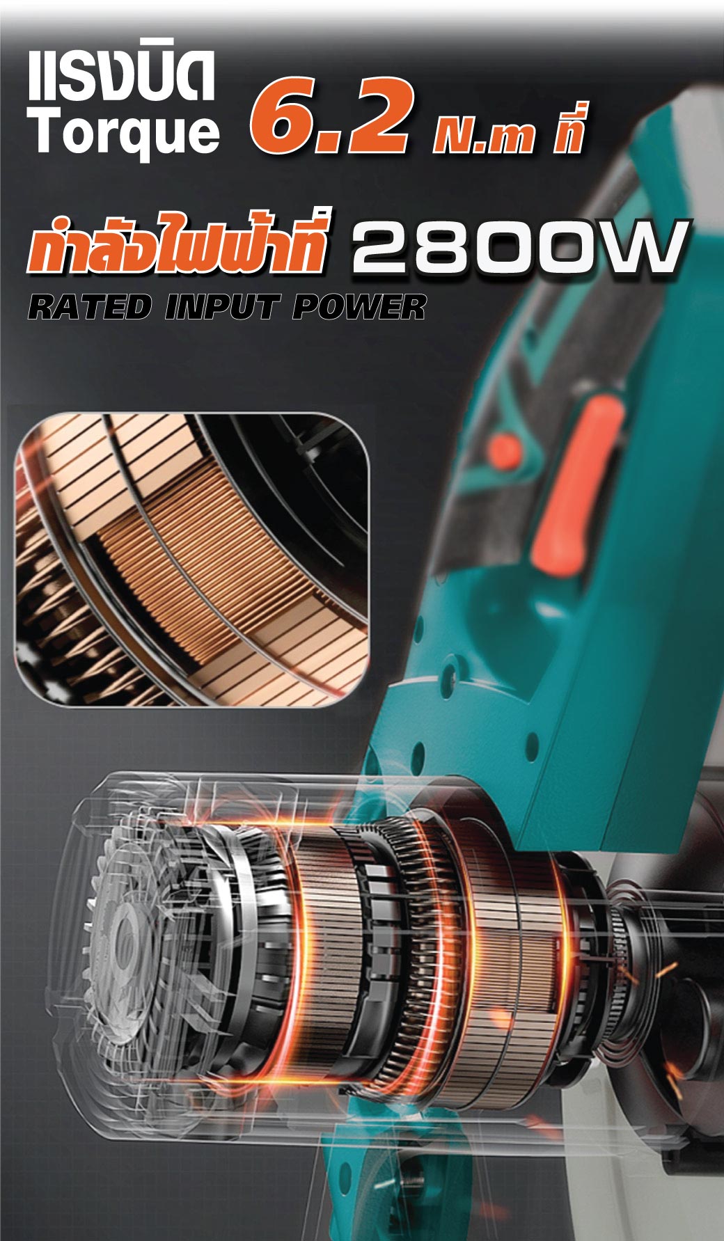 • "แรงบิดเต็มกำลัง" 2800W ประสิทธิภาพสูง 3800 รอบ/นาที"