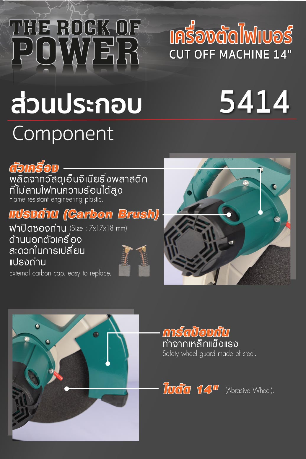 เครื่องตัดไฟเบอร์ 14 นิ้ว รุ่น 5414 แรงบิด 6.2N.m กำลังไฟ 2800W ความเร็วรอบ 3800RPM สายไฟขนาด 2m