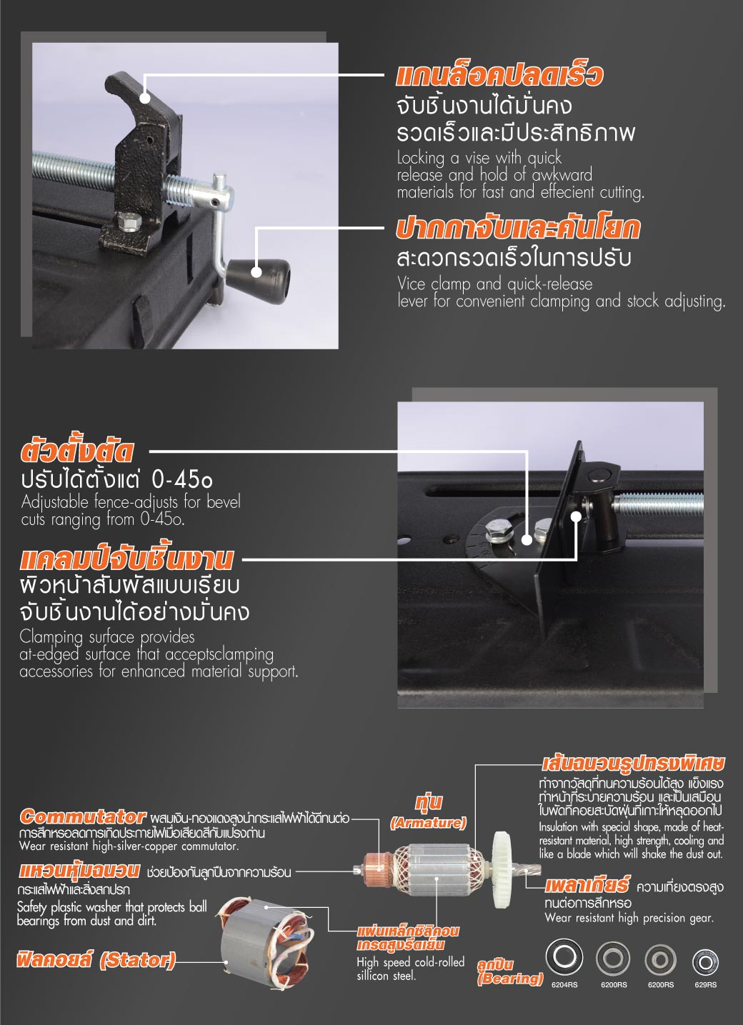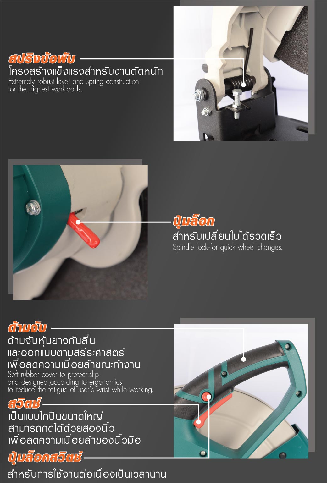 • เครื่องตัดเหล็ก ใช้ร่วมกับใบตัด 14" ขนาดรู 25.4 mm