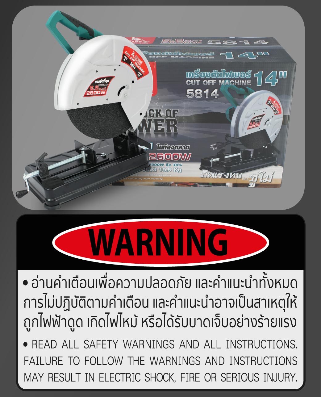 เครื่องตัดไฟเบอร์ 14 นิ้ว กำลังเครื่องแรงที่สุดในท้องตลาด 6.8N/m ที่ 2,600W รอบ 3700RPM สามารถตัดได้เร็วกว่ารุ่น 2000W ถึง 30%