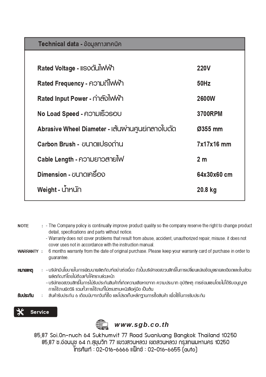 คุณกำลังรีวิว:เครื่องตัดไฟเบอร์ 14" รุ่น 5814 SUMO