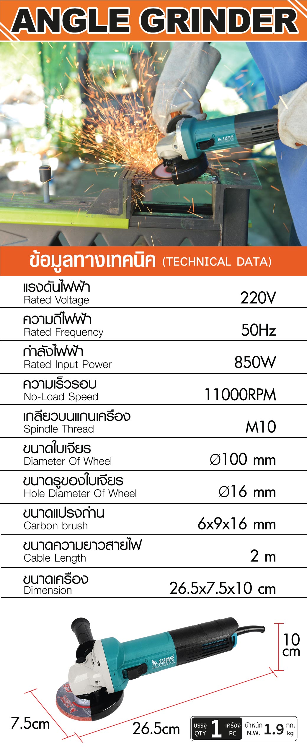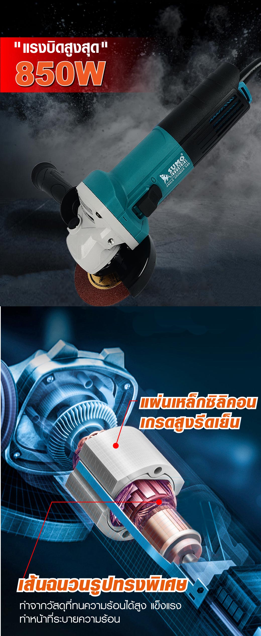 • มีกำลังวัตต์ 850W และมีความเร็วรอบ 11000 รอบต่อนาที