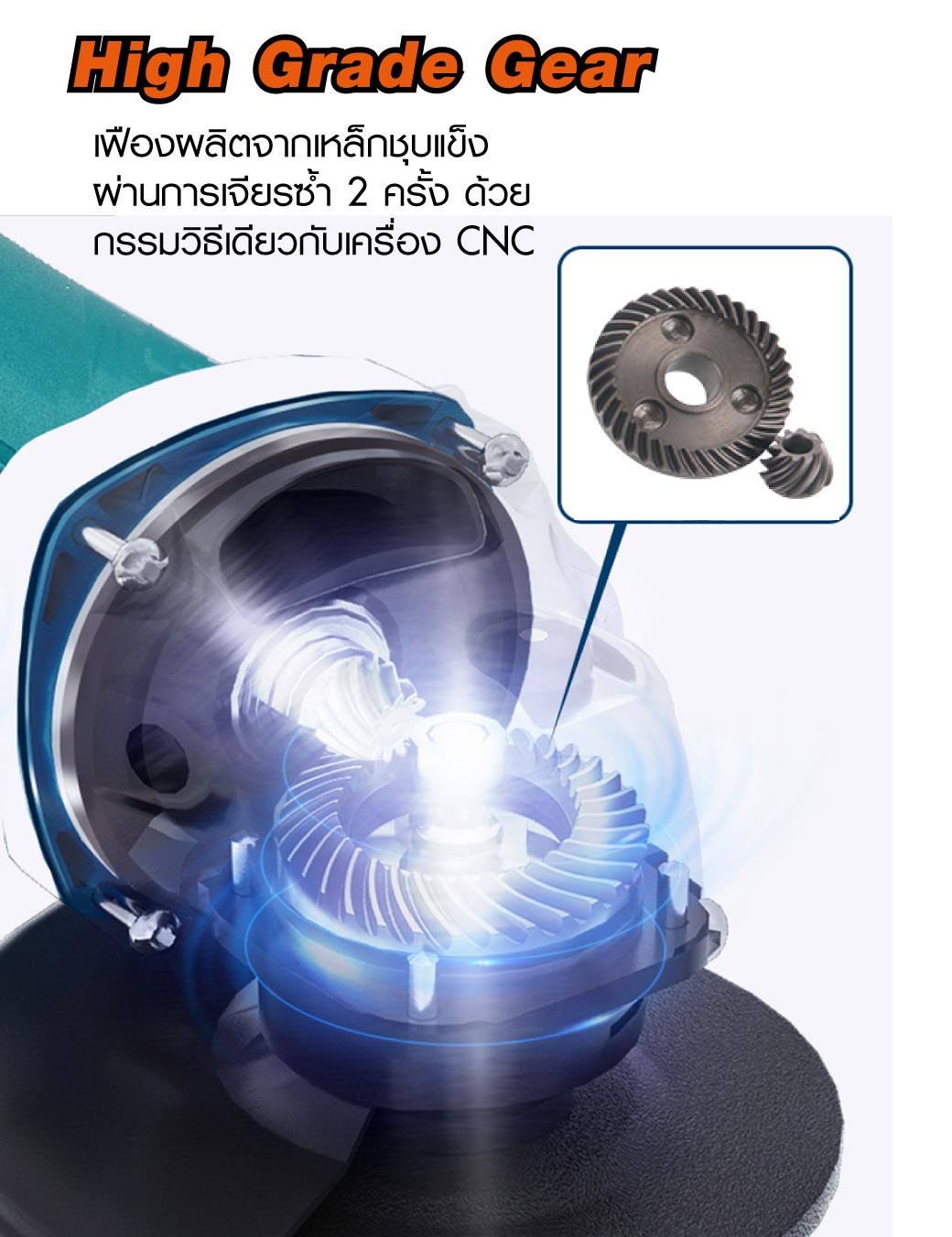 • เครื่องเจียร 4นิ้ว ตัวเครื่องผลิตจากวัสดุเอ็นจิเนียริ่งพลาสติกที่ไม่ลามไฟ ทนความร้อนได้สูง