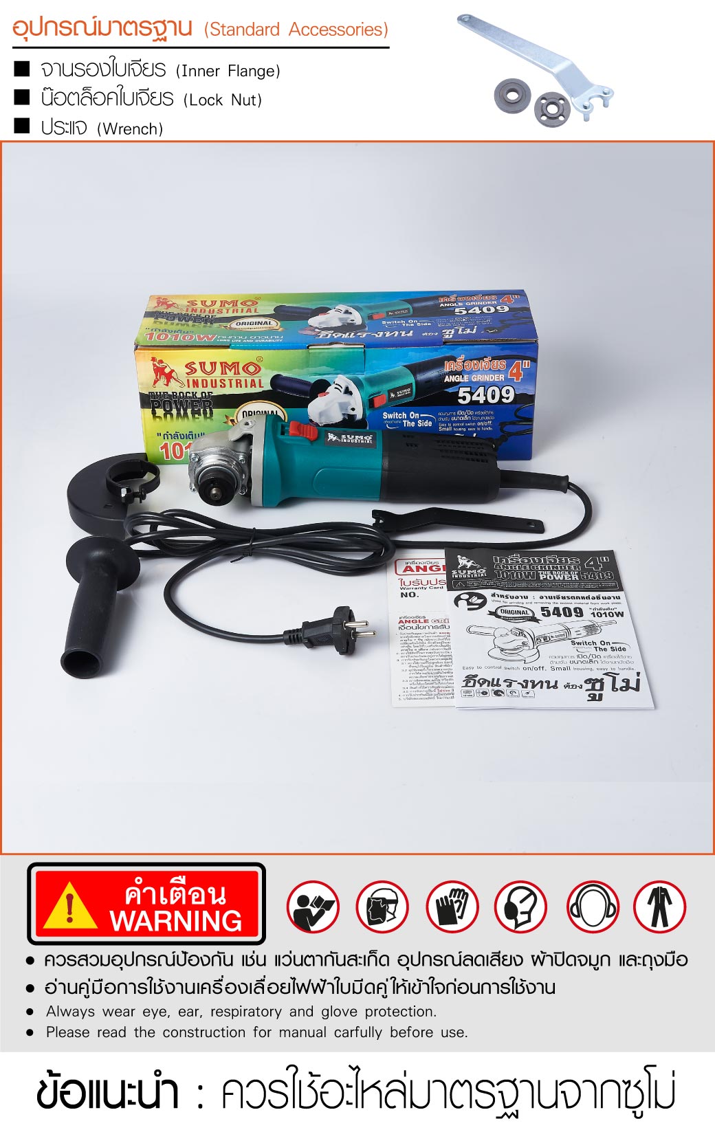 คุณกำลังรีวิว:เครื่องเจียร 4" รุ่น 5409 SUMO