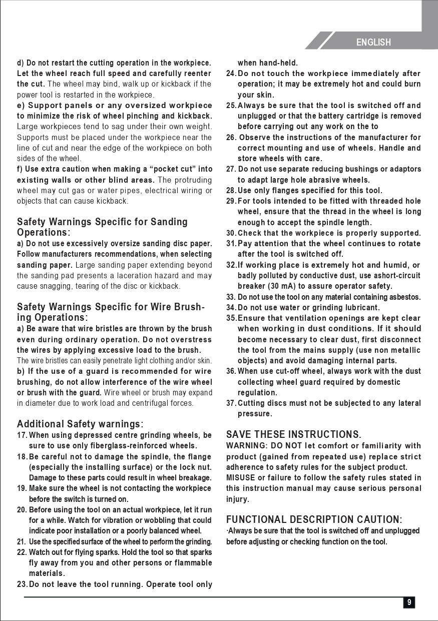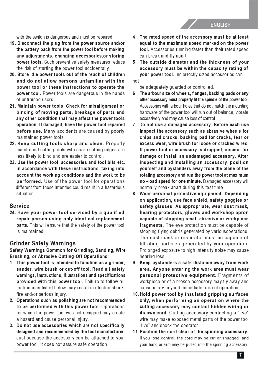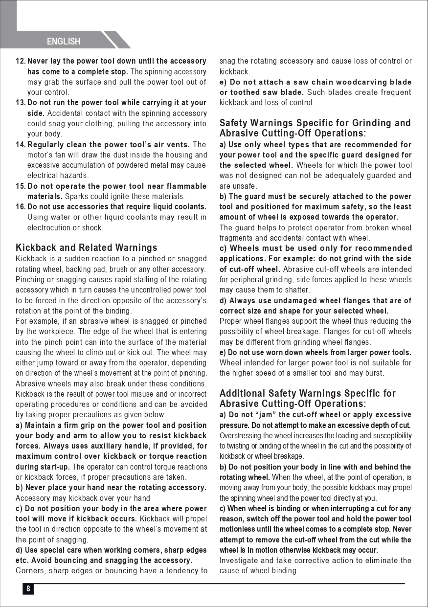 (Before every work Make sure that the grinding wheel is not damaged or cracked.)