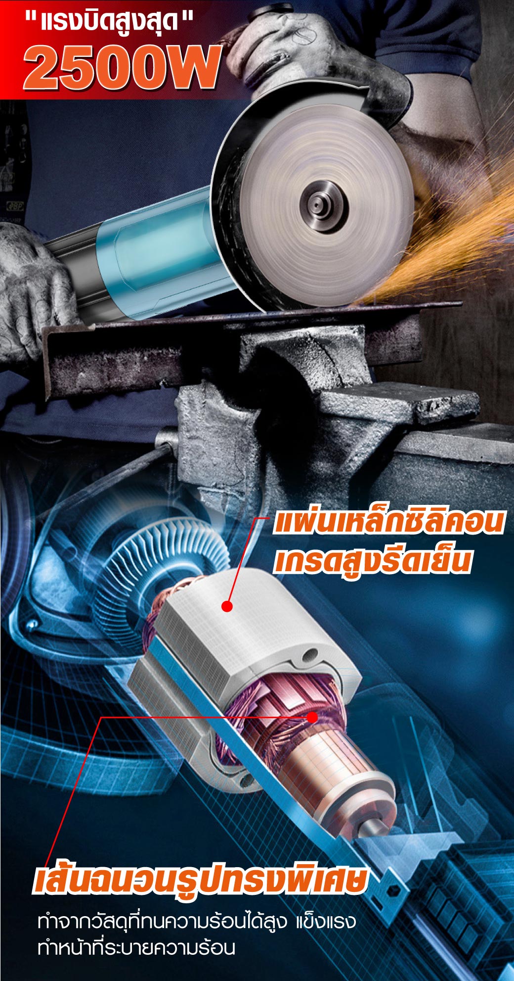 • เครื่องเจียร 9 นิ้ว มี ลวดทองแดงอาบน้ำยา เกรดสูงสุด Class N 200°C